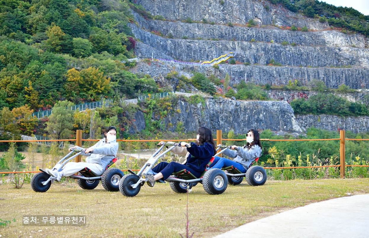 - 경사진 도로와 곡선 구간이 많아 스릴감이 뛰어나며, 안전교육 후 출발해 초보자도 안심하고 탈 수 있습니다.