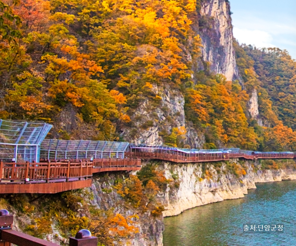 - 단양강 잔도는 남한강 절벽을 따라 설치된 데크 산책로로, 탁 트인 강변 풍경과 아찔한 스릴을 동시에 즐길 수 있는 단양의 대표 트레킹 명소입니다.