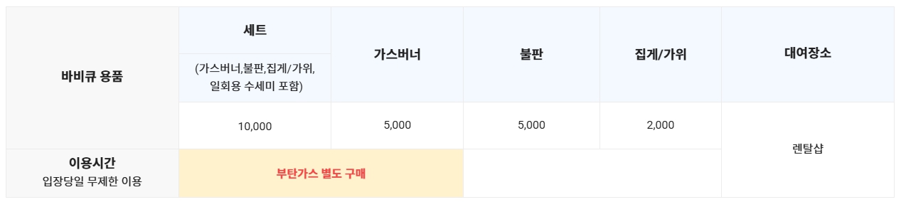 - 개인 버너, 바비큐 용품(취사 가능 구역 한정)