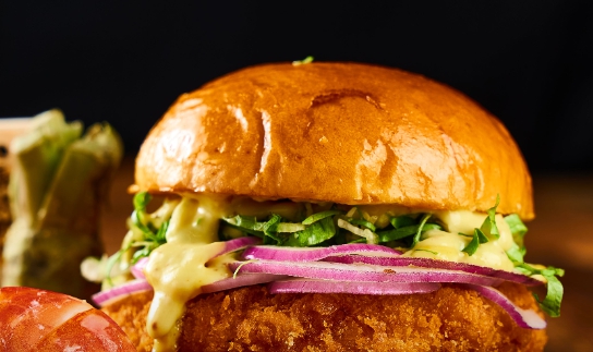 • 통새우 패티와 와사비 소스, 신선한 야채가 어우러진 시그니처 버거.